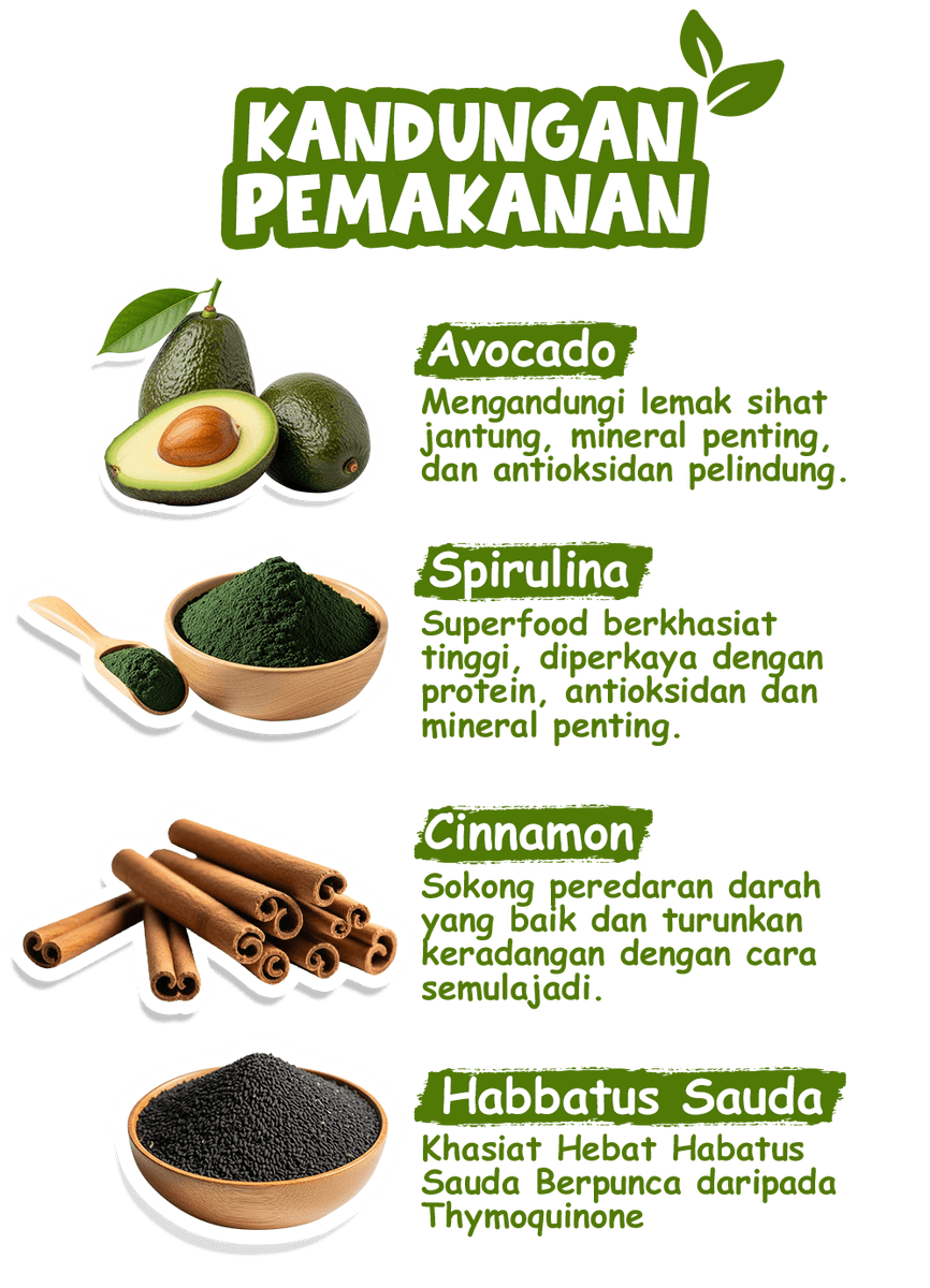 AVOLINA SIII ialah suplemen kesihatan halal yang diformulasikan daripada bahan semula jadi dan organik seperti Avokado, Spirulina, Habbatus Sauda dan Kayu Manis, terkenal dengan khasiatnya dalam menyokong kesihatan tubuh secara semula jadi.